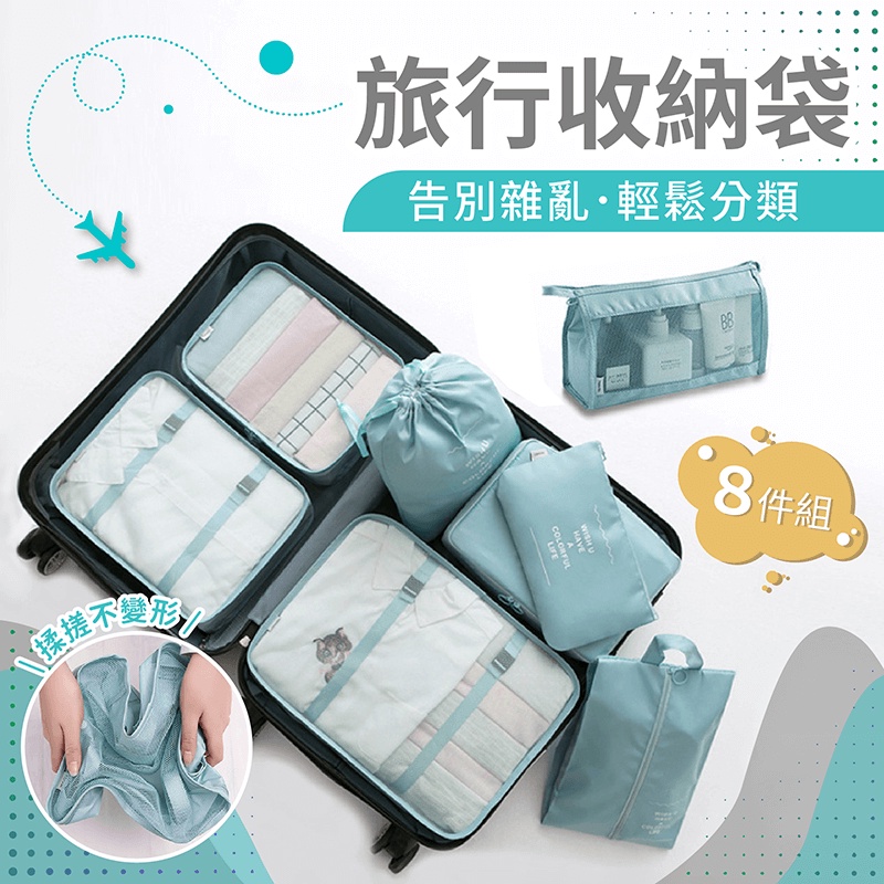 - 【旅行收納袋 八件組】旅行袋 壓縮袋 收納包 束口袋